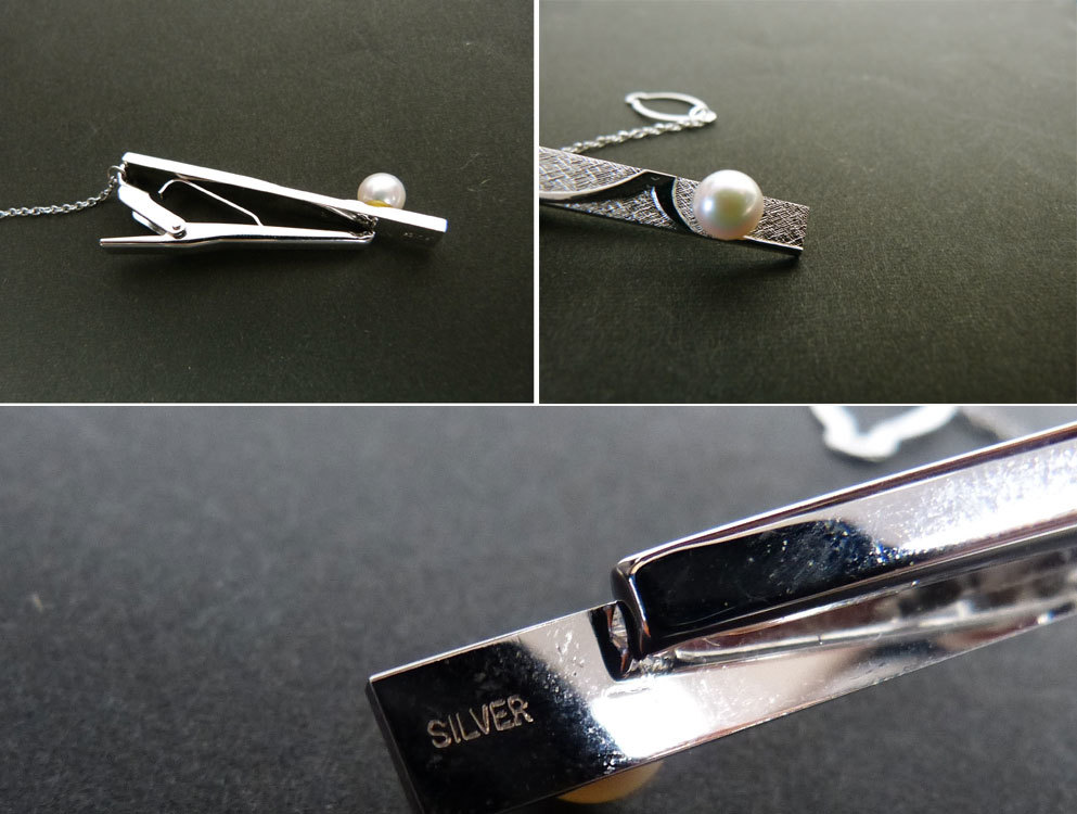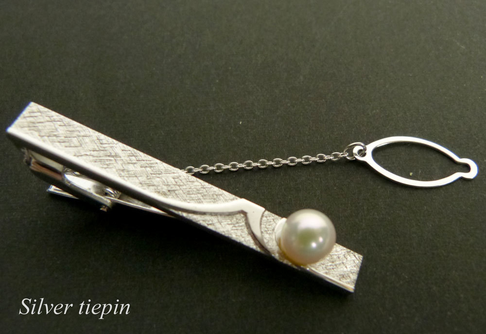 素材はシルバー。シルバー製ネクタイピン/タイピン。真珠部分は人工真珠です。【メール便対応可】