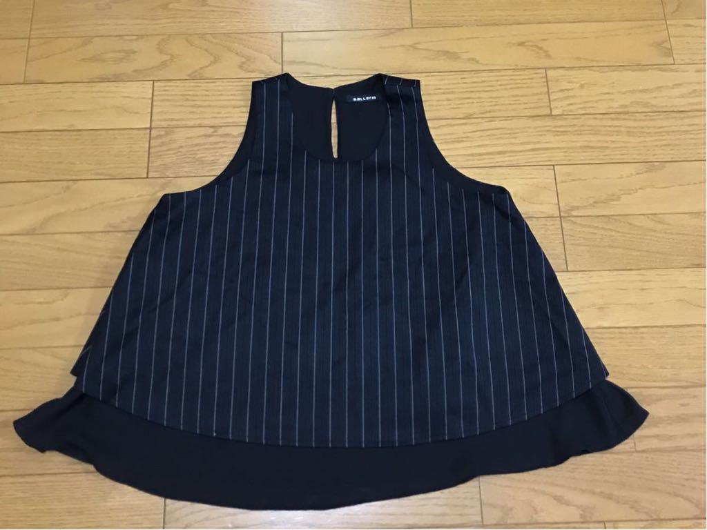 商品名:GALLERIEブラック ストライプノースリーブカットソー