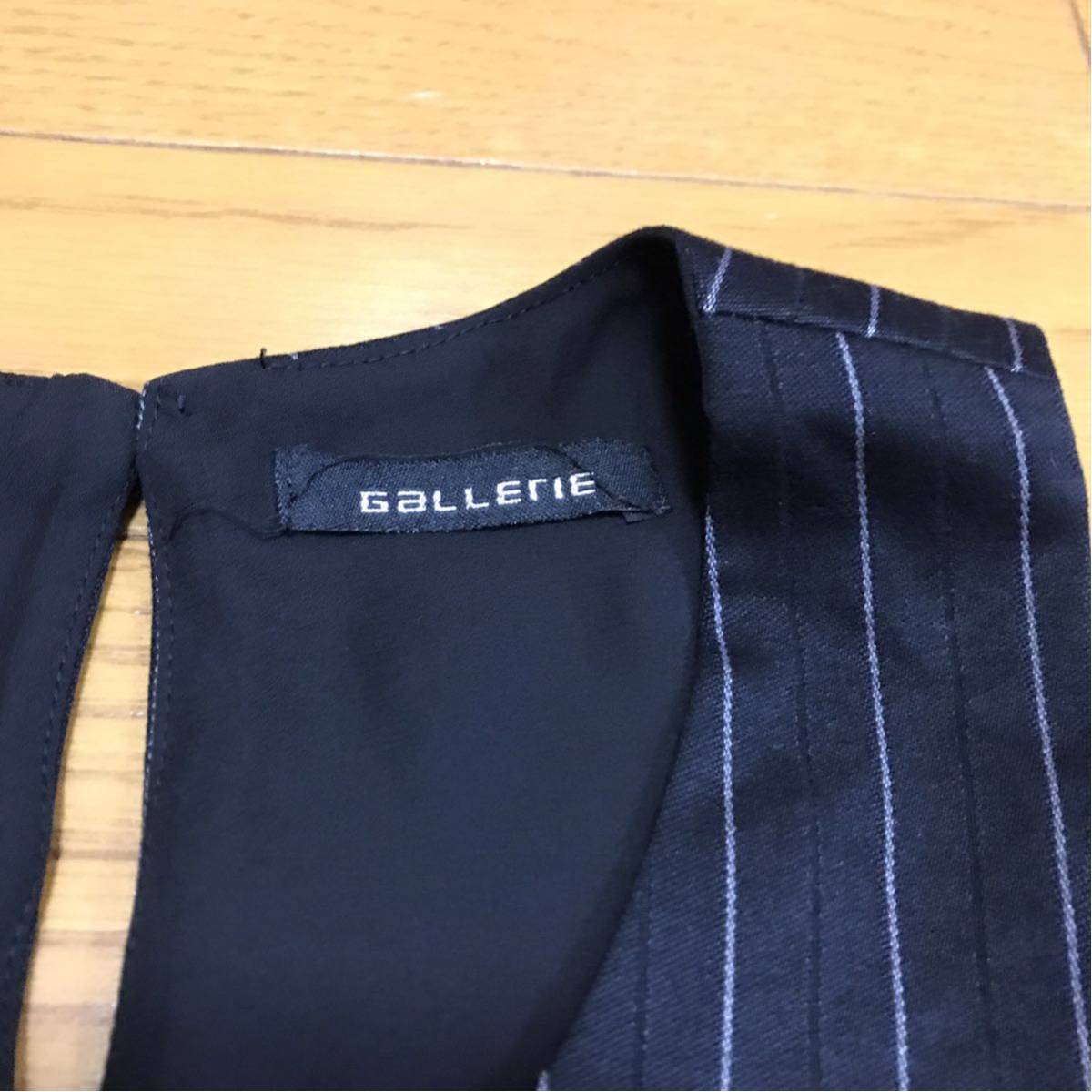 GALLERIE ギャラリー ブラック ストライプ ノースリーブ カットソー Aライン サイズF