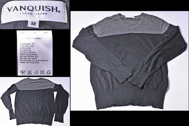 【VANQUISH ヴァンキッシュ】★長袖サマーセーター★黒xグレー★サイズ:M です。