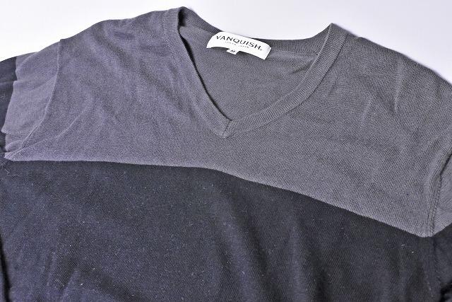 【VANQUISH ヴァンキッシュ】★長袖サマーセーター★黒xグレー★サイズ:M★