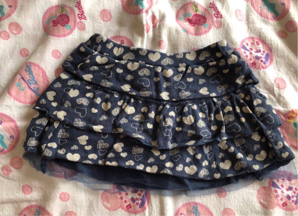 ネイビーの三段フリル×レース ハートがいっぱいでとてもキュートなミニスカート サイズ90 スキップランド 赤ちゃん本舗
