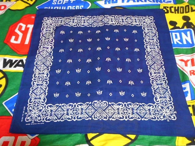 ★コンディション◎な1枚★Made in USA製アメリカ製FAST COLORファーストカラービンテージ幾何学柄プリントコットンバンダナ紺色60s60年代