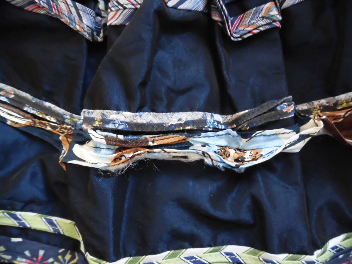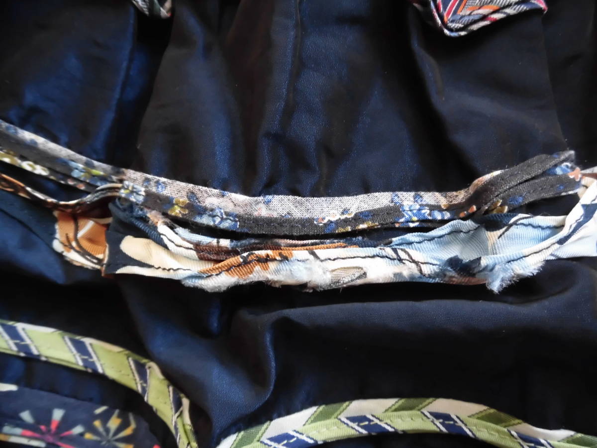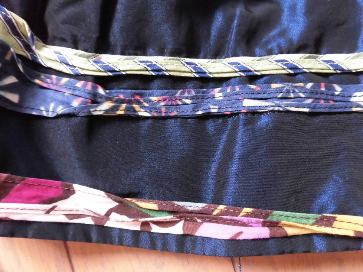 カラフルな別布でフリルのようになっています。製造上の問題だと思いますが、別布返し縫部分が2つ折りでなく1つ折りの部分があり、裏にほつれがあります。