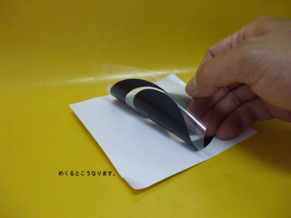 ■透明転写シートと共に本体シールを台紙より剥がし、貼りつけ箇所に圧着して下さい。透明転写シート上より固いもの(ビン底・ヘラなど)でこすり、十分な接着をご確認の上、ゆっくりと透明転写シートのみを剥離して下さい。