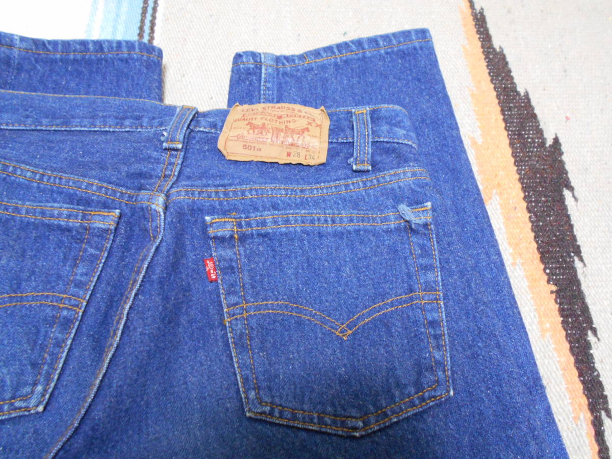 1980~90年代初頭生産、本国アメリカ サンフランシスコ リーバイスUSA 正規規格、セルビッチが廃止されて間もない頃の 501 MADE IN USA、紙パッチの 赤印字501XX、フロントトップボタン裏 522 刻印入り、インナーのレフトにリーバイスの赤エンブレム入りサイズ表示ラベル付き ビンテージ オリジナル MADE IN USA
