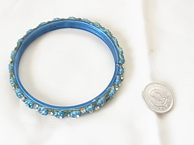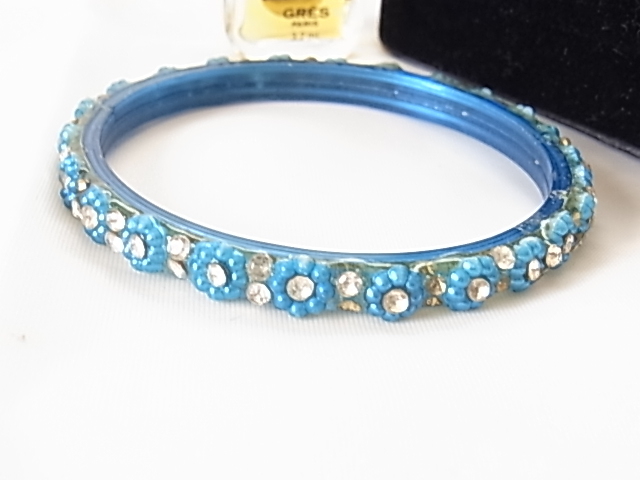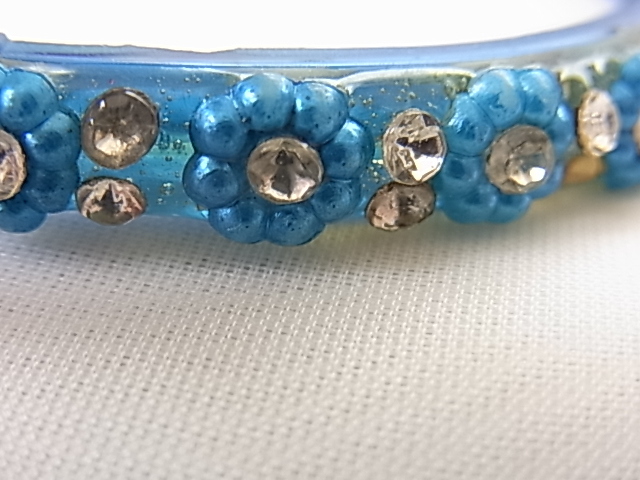 美しいロイヤルブルーのビーズにクリアのラインストーン使い お花 フラワーのデザインの施し 涼しげデザインのブレスレット◎◎