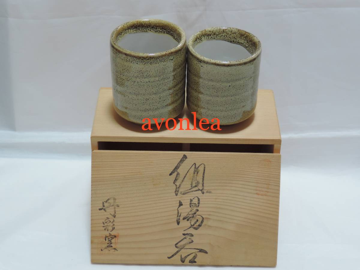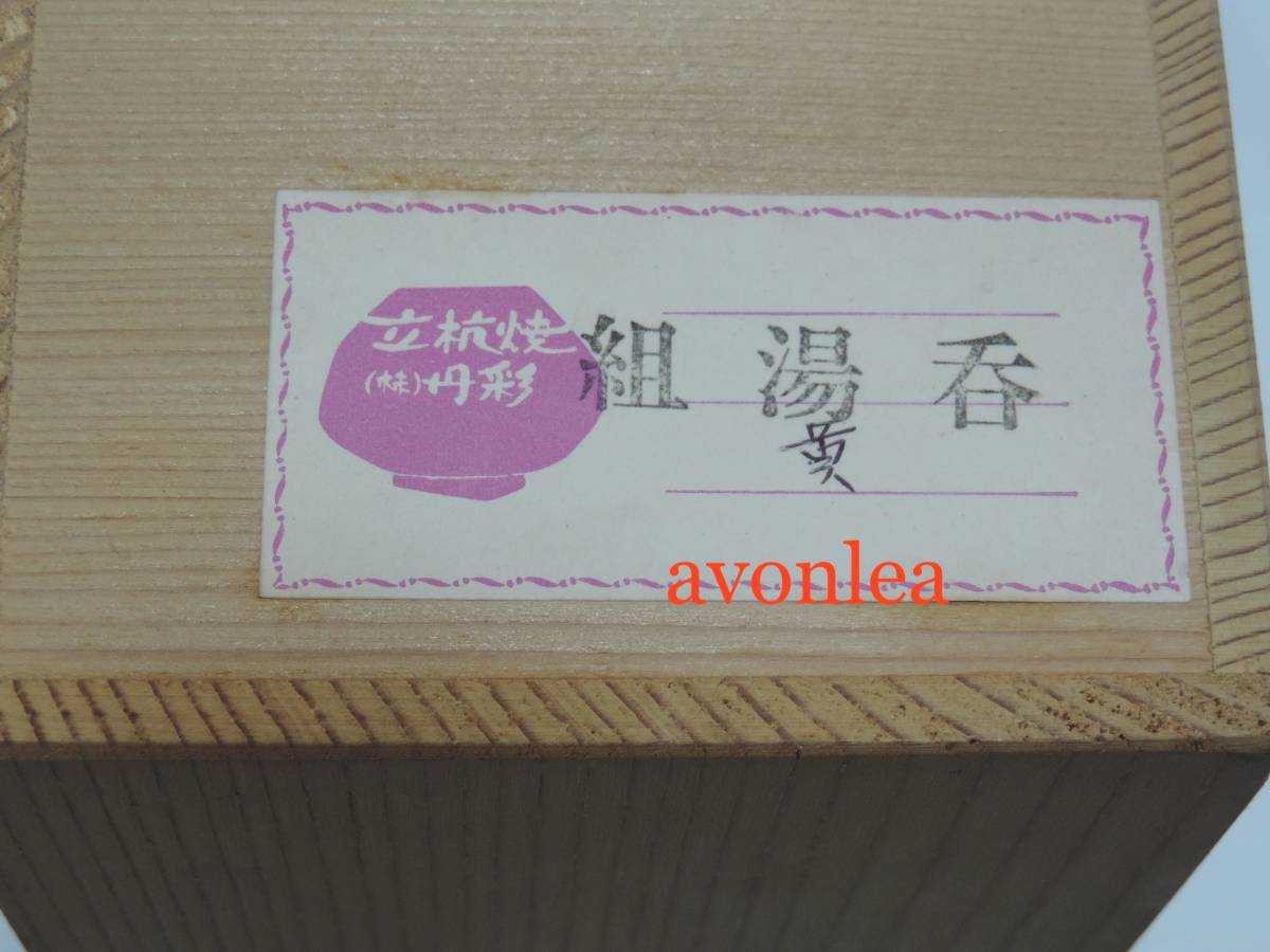 丹彩窯の立杭焼・組湯呑です。 暖かみのある色あいで、和の雰囲気漂う湯飲みセットです。 大きさは、大:直径6.5×高さ7(㎝)、小:直径6.5×高さ6.5(㎝)です。 毎日のお茶にもピッタリの使いやすさです。 お探しの方いかがですか。 写真撮影のみの未使用新品です。 木箱にはすれこすれ等があります。 他にも色々出品中ですのでよろしければご覧ください。 お取り置き・同梱発送も承ります。 |