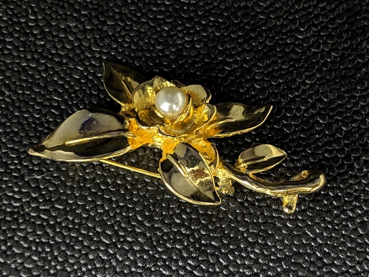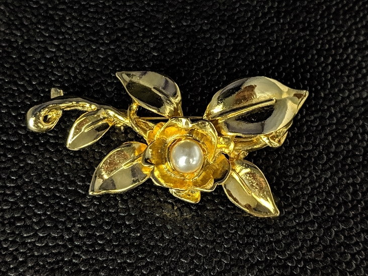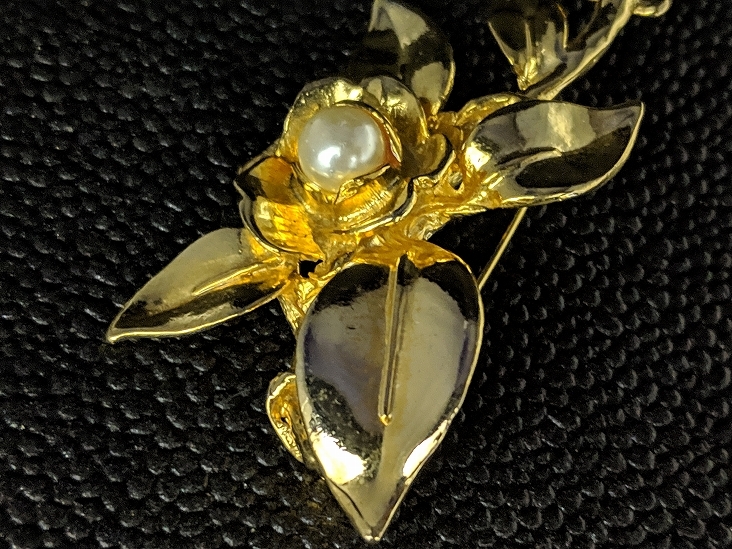 【送料無料】A164 アンティークブローチ パール 真珠 お花 植物モチーフ