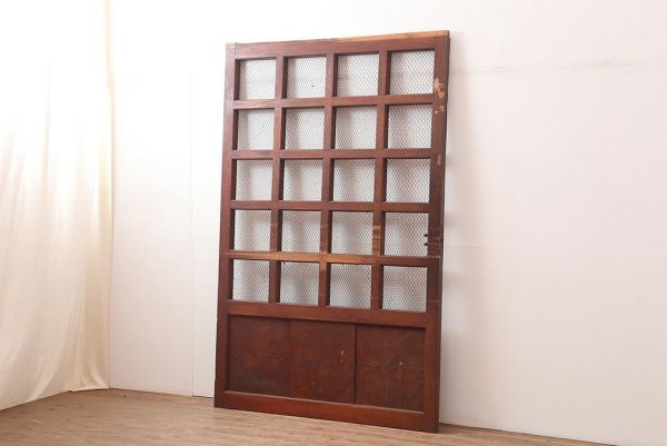 R-045844 アンティーク建具 大正期 総ケヤキ材 亀甲金網 和の風格漂う蔵戸(引き戸、建具)