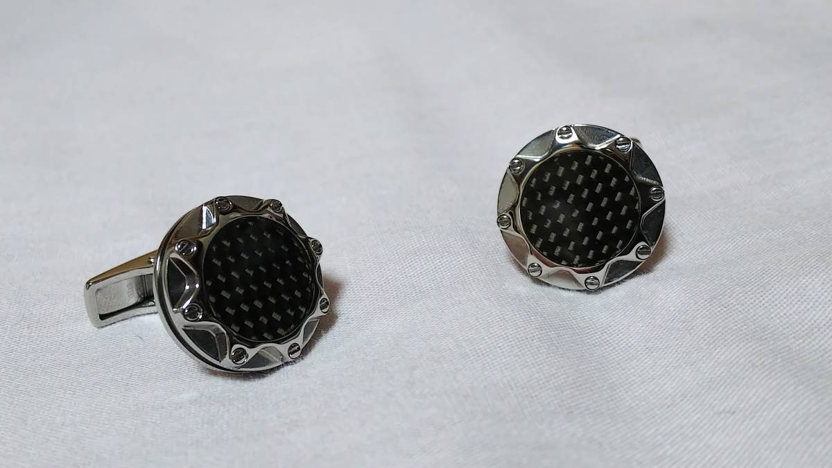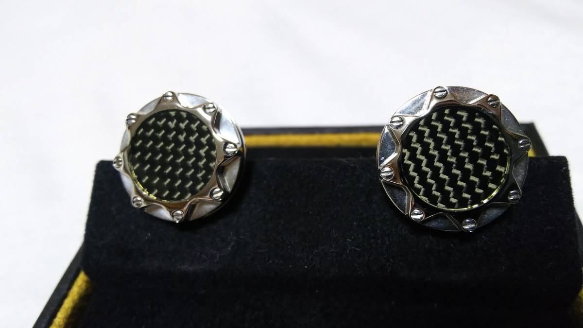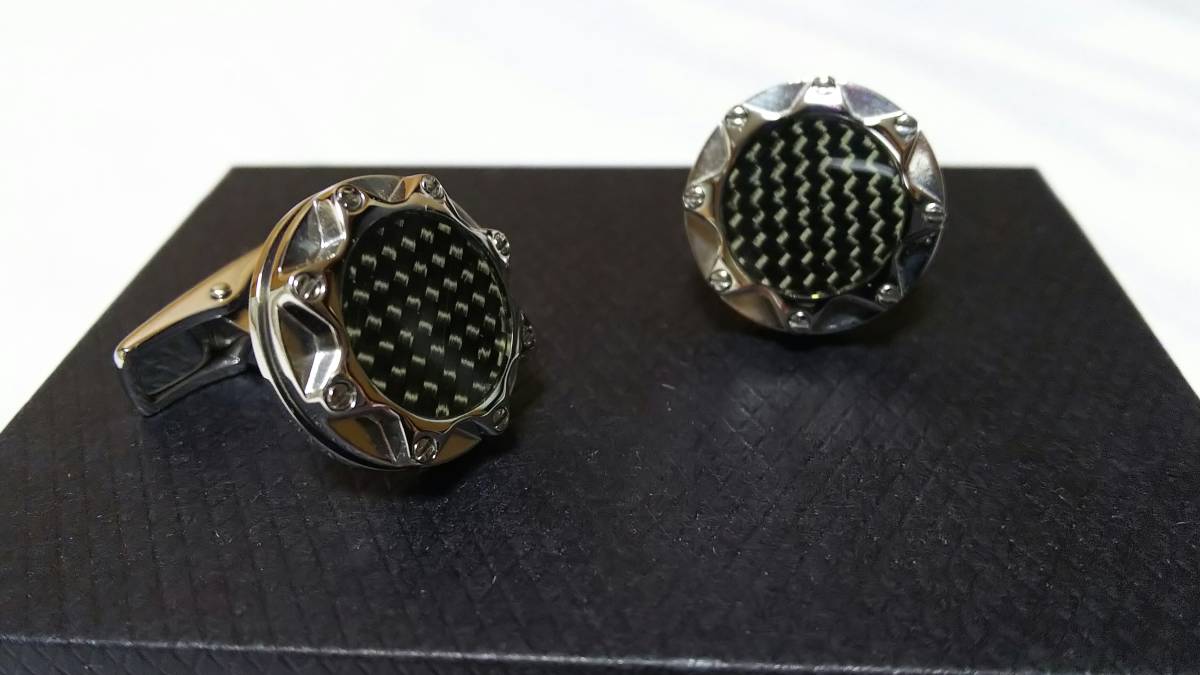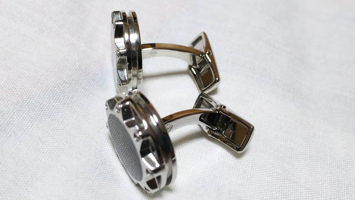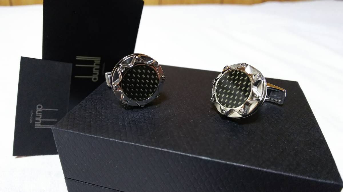 正規新古 Alfred Dunhillアルフレッドダンヒル ADロゴ オーバルスターカフス サンモチーフカフリンクス シルバーラウンドボタン カーボン調