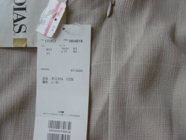 未使用タグつきの、東京ブラウスのDIASブランドの、きちんとしたつくりのさらりとしたしじら風ベージュスカートです。
