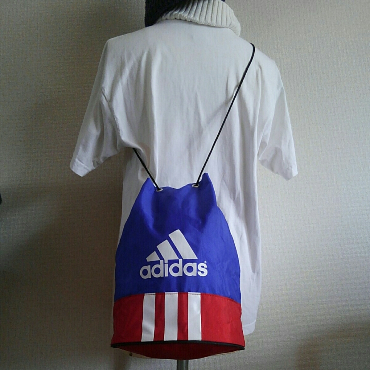 アディダス adidas ショルダーバッグ トリコカラー バケツ型 巾着 ナイロン 90sビンテージ K20E80