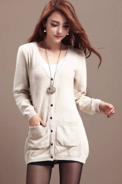 冬暖かいふんわりと肌触りのよい婦人用カシミヤのロングカーディガンМ 薄いベージュ | |||||||||||||||||||