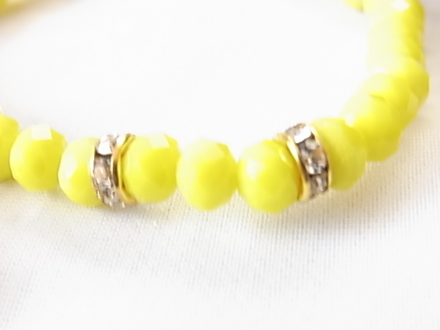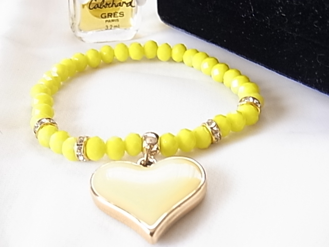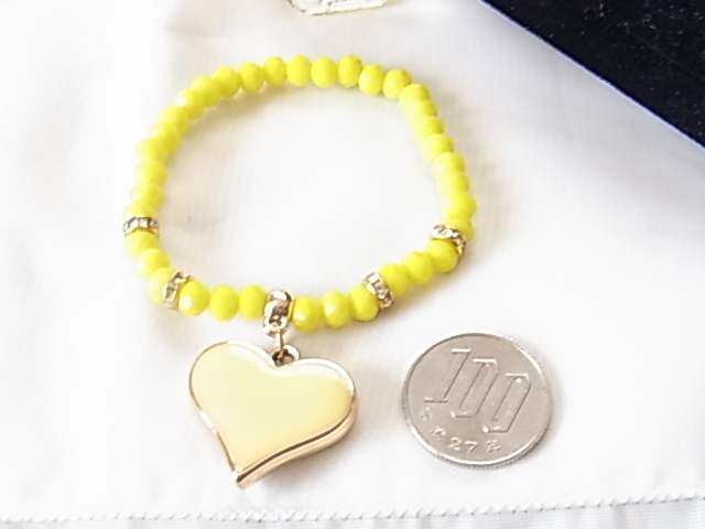 元気なイメージの黄色のビーズストーンにハートのチャーム付き 伸縮性ブレスレット①▼