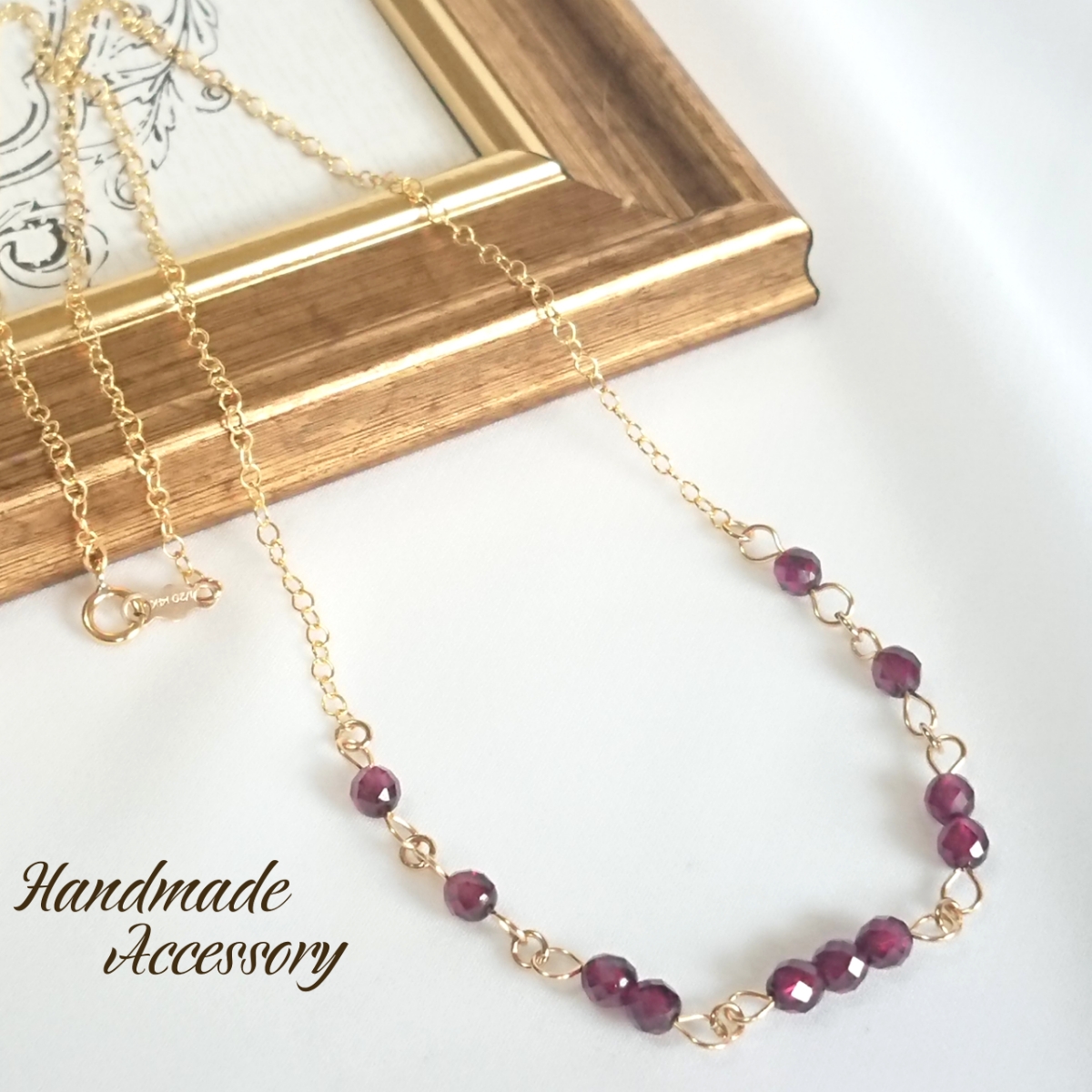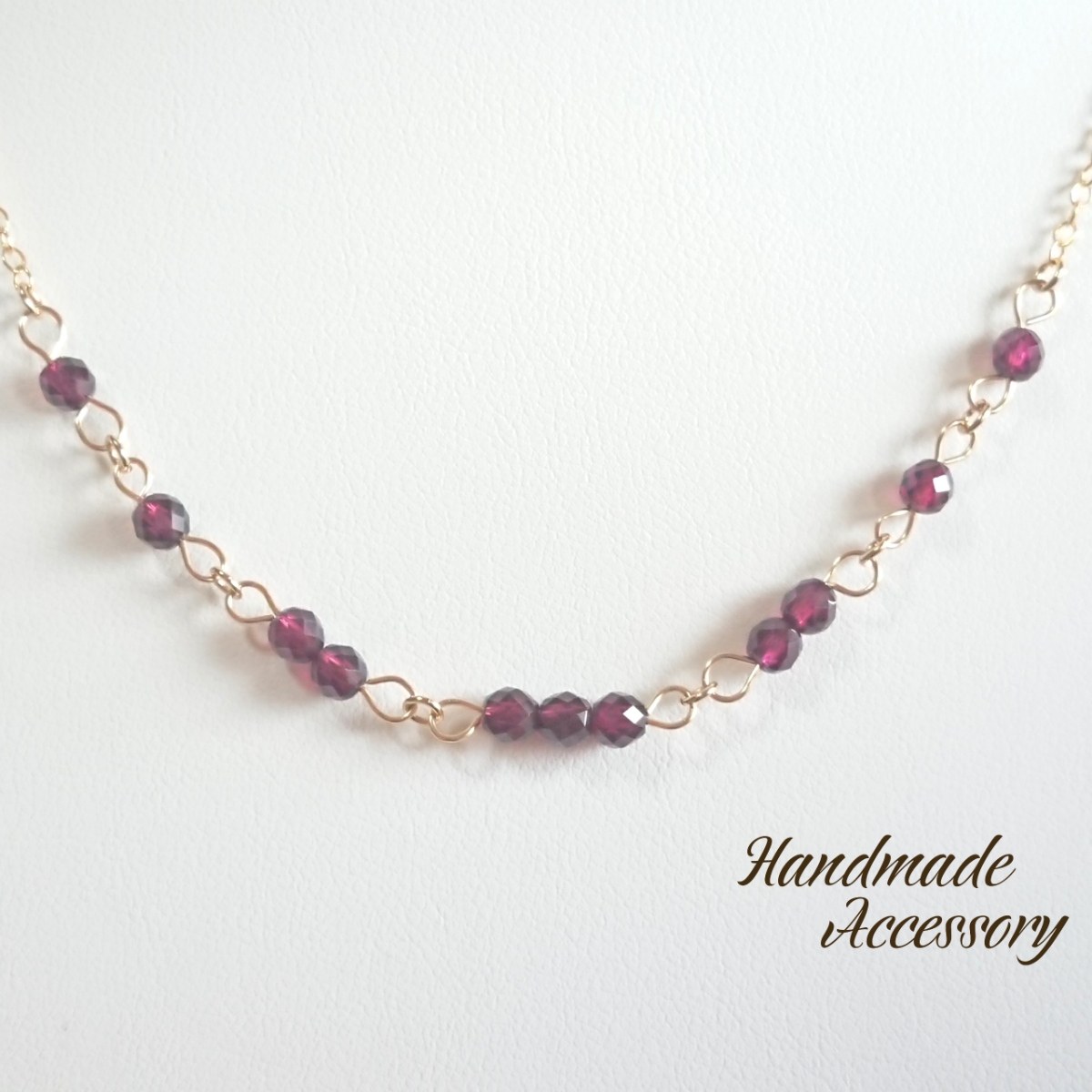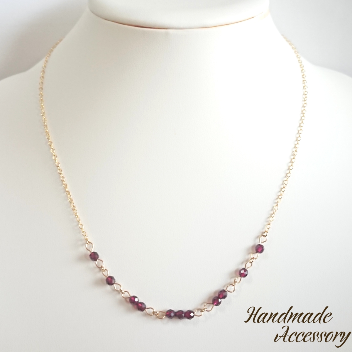 インド産ガーネットの32面カットのみを使用して華奢なデザインに仕上げたネックレスです。