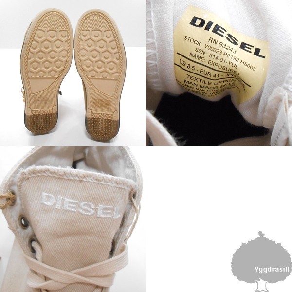 商品名:YGG★新品 DIESEL ハイカットスニーカー 白黒系 41 シューズ かかとが黒