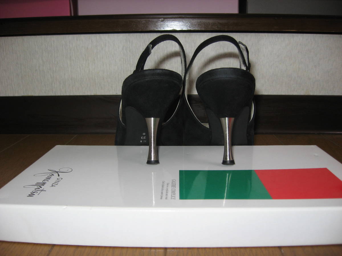 ◆美品!銀座かねまつのラウンドトゥバックストラップ23cm黒スウェード◆