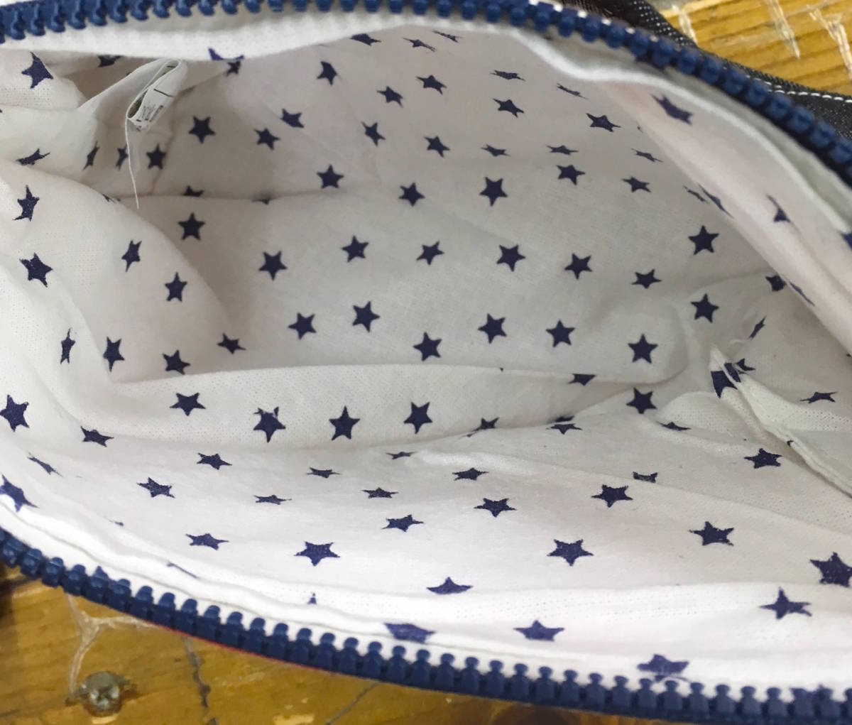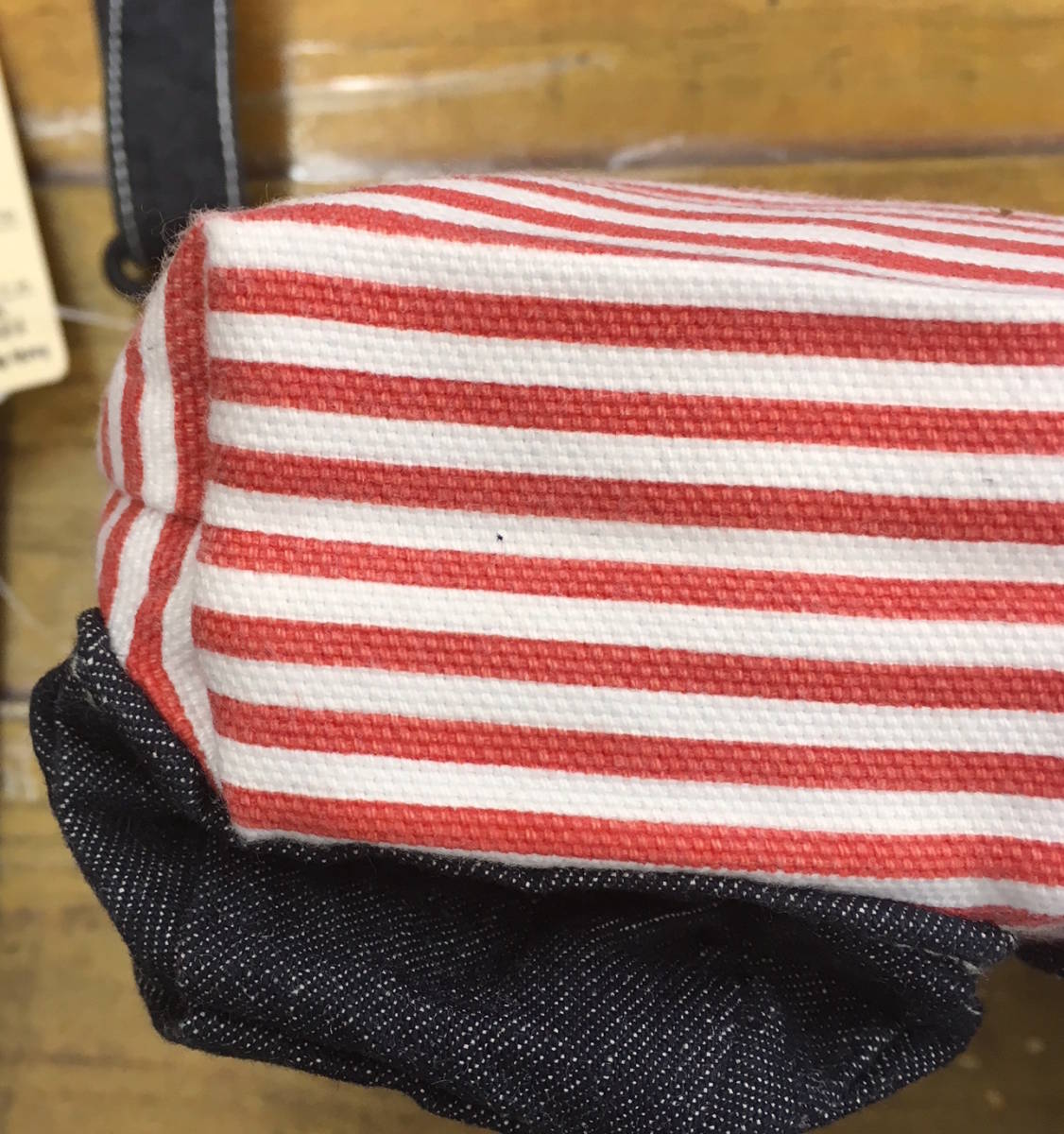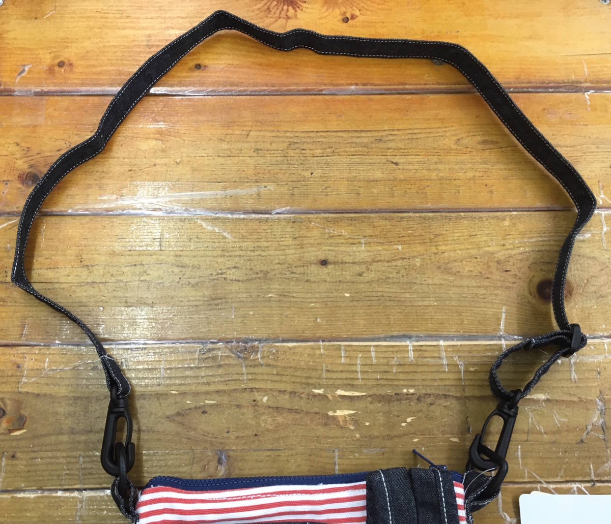 ・サイズ表記:本体縦約13cm、本体横約19cm、本体底部マチ約4.5cm、デニム部分紐約82cm、