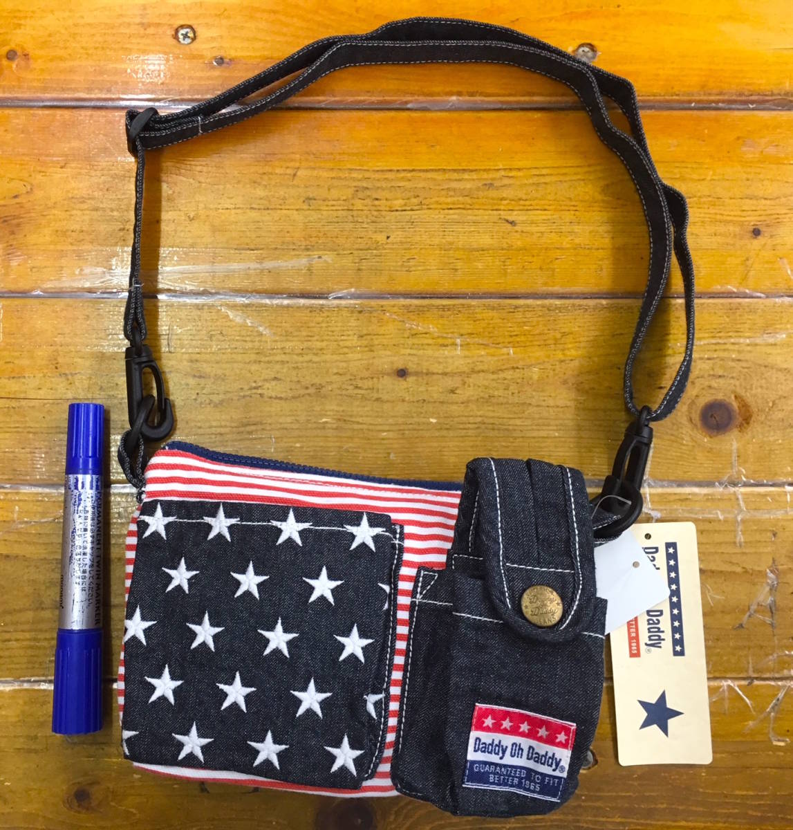 即決 新品タグ付 daddyohdaddy ダディオダディ★子供用 ママ用★星条旗柄 デニム ミニショルダーバッグ ポシェット★¥2860