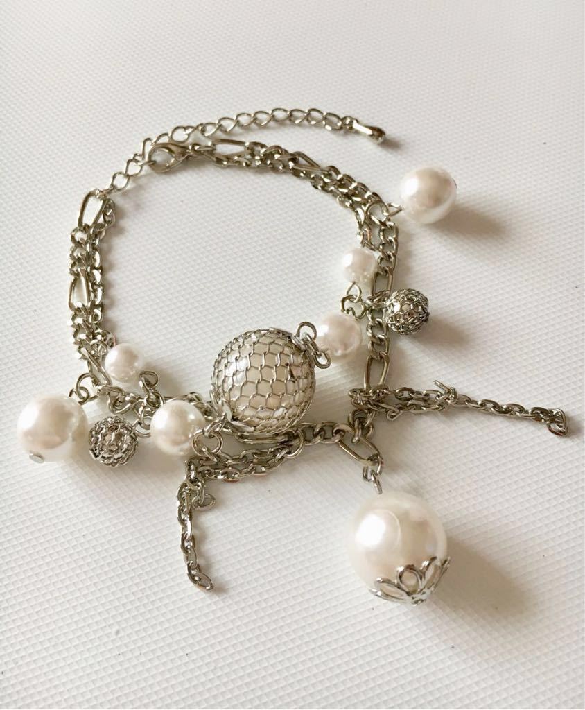 こちらは、パールビーズとシルバーカラー の 2連のブレスレット になります♪