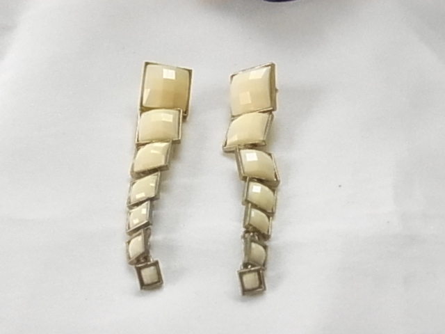 アイボリーホワイト カッティングが綺麗なデザイン 耳元で揺れる キャッチはありません ピアス♪