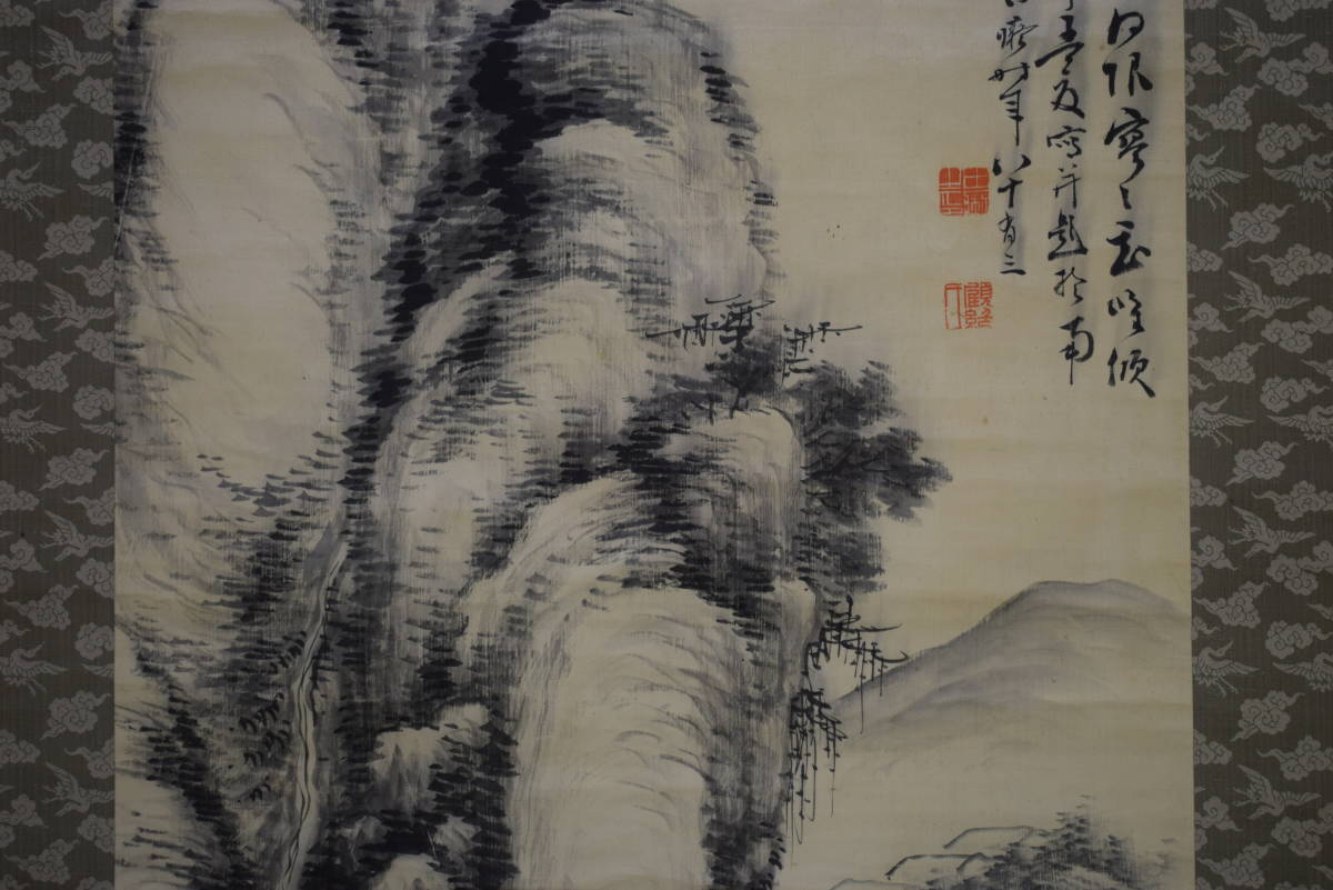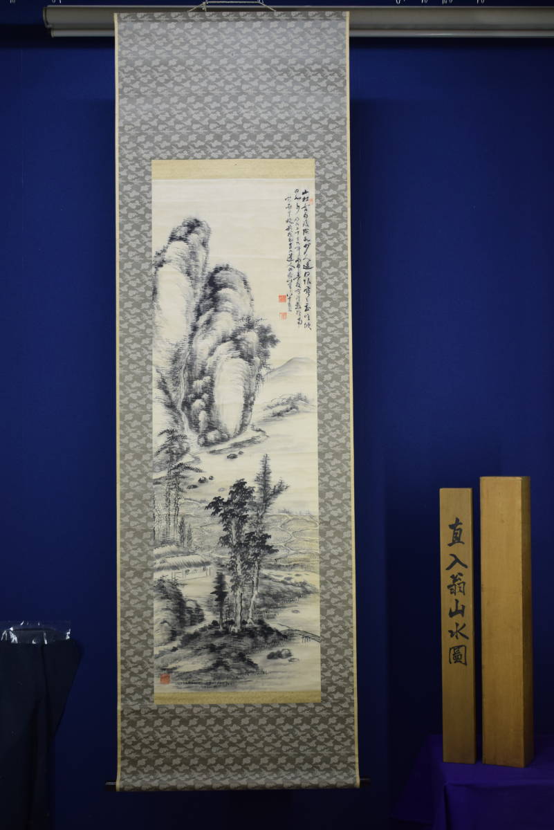 【模写】/田能村直入/山水画賛/杉箱二重箱付
