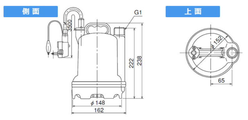 【用途】建築設備、工業設備用。ビル・マンション等高架水槽の残水排水。地下道の溜水排水に。河川工事の湧水排水に。プール・水槽・各種ピットの残水排水に。
