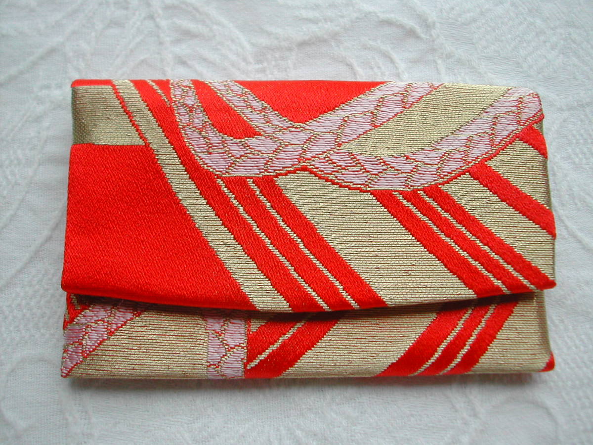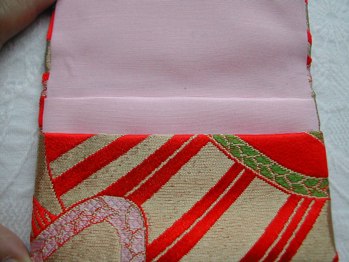 手作り 金襴カードケース名刺入れ保険証入れ (赤地に金とピンク)