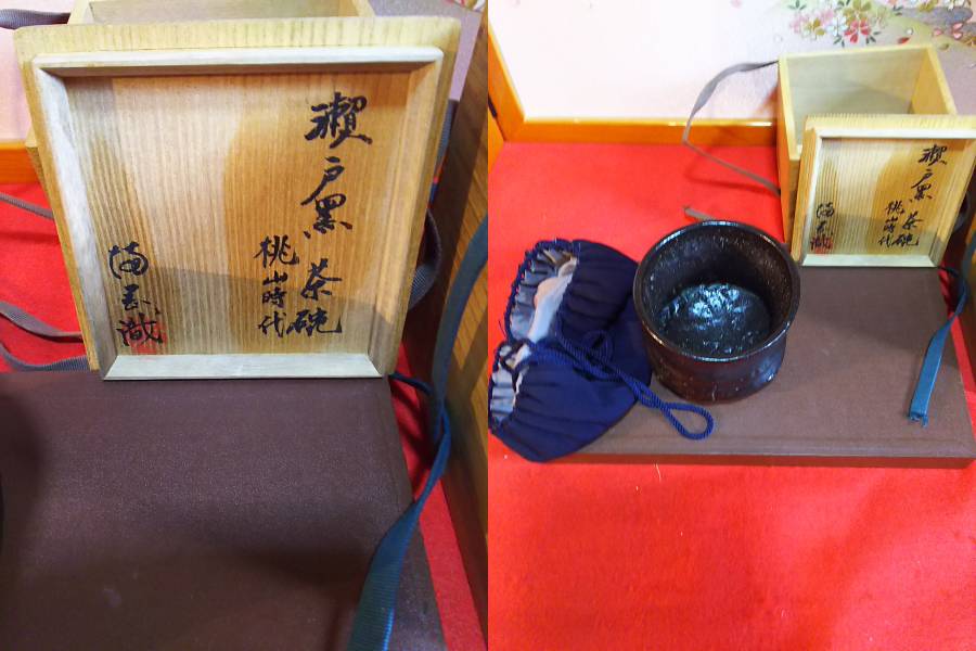 (鳥羽庵)うぶだし骨董桃山時代瀬戸黒茶碗(二重箱極め書) サイズ径11,8センチ 高さ9センチ 重量359グラム 時代桃山時代 (極め書き)にて 当方も専門外ですがとても良い風合いです。 商品状態も極上品です。 2重箱敷布付き 当方も専門外ので詳しくは、写真参照でお願いします。 骨董品につきノンクレームノンリターンでお願いします。 落札後48時間以内で連絡連絡できる方4日以内で入金できる方入札待ってます。 発送発送ゆうパック120サイズで発送いたします。