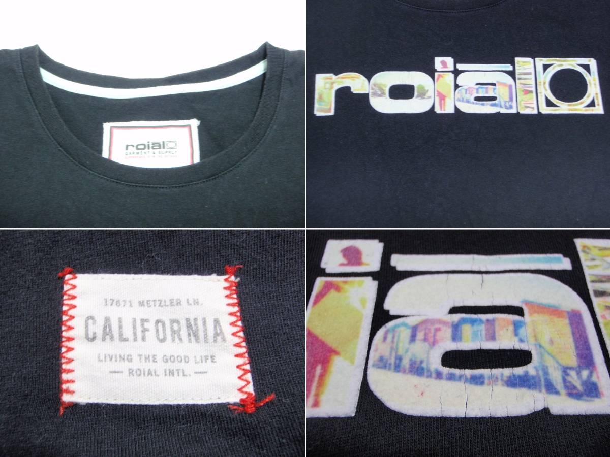 送料込・USED ロイアル ROIAL BIGフロッキーロゴプリント 半袖Tシャツ 黒 Mサイズ