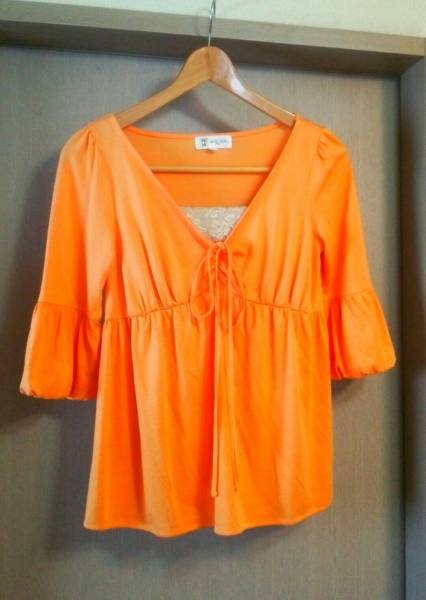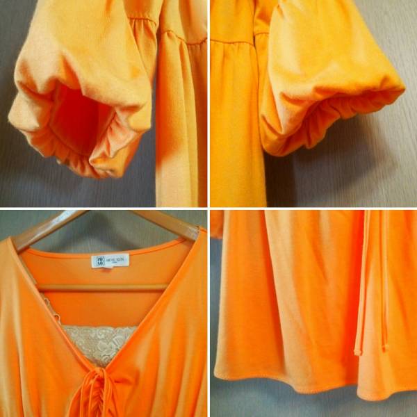 新品同様 MK ミッシェルクラン 半袖カットソー チュニック オレンジ キャミソール付 ゴールド アンサンブル エムケー リゾートに トップス