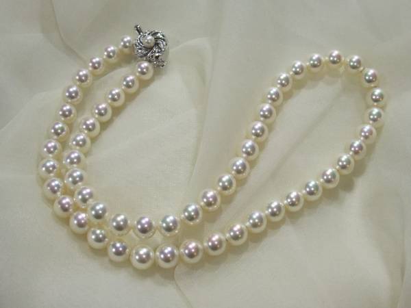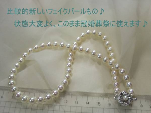 画像の、きれいめデザインがとても素敵なコスチュームジュエリー、状態の良い古いフェイクパールのネックレスです☆
