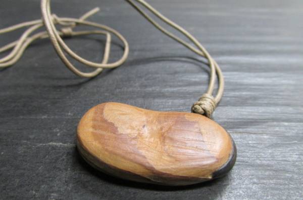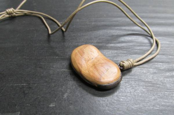 世界遺産の屋久杉をつかってそら豆のペンダントを作ってみました。脂の多い屋久杉を使って磨き上げますとしっとりとした仕上がりとなります。