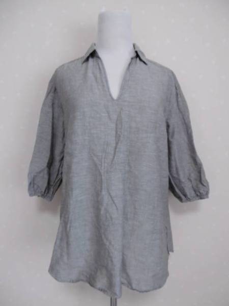 ★ ユニクロ ★ 綿麻ブラウス L グレー (0531)