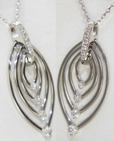 ペンダントのサイズ約: 縦35.9×横18.5mm (カン含む)K18WG刻有 ネックレスの長さ:約50cm 幅約1.3mm K18WG刻有 長さを自由に調節出来るフリーチェーン 総重量: 約8.1g 鑑別書:無し * 新品 |