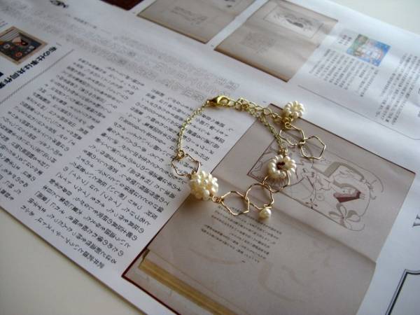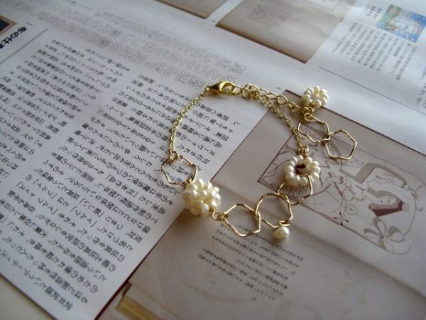 ずっとお気に入り・・シリーズです♪小さなパールを集めて・・小さな淡水パール玉やパールリングにデザインチェーンを合わせた ブレスレットです♪パール玉は10ミリ、パールリングは11ミリ位です♪5角形のデザインチェーンを合わせて華奢で可憐な表情です♪長さは16センチ+ア ジャスター6センチで最長22センチ位です♪お揃いのやネックレスやピアスも出品しています♪シンプルで飽きのこない いつまでも着けられるデザインを考えて作りました!ハンドメイドをご理解頂いてノークレーム、ノーリターンでお願いします