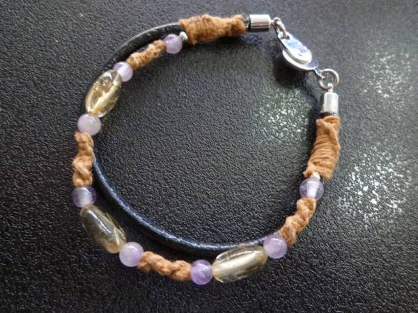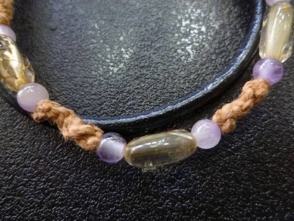 ゴールドルチルクォーツ アメジスト 手編み2連ブレスレット
