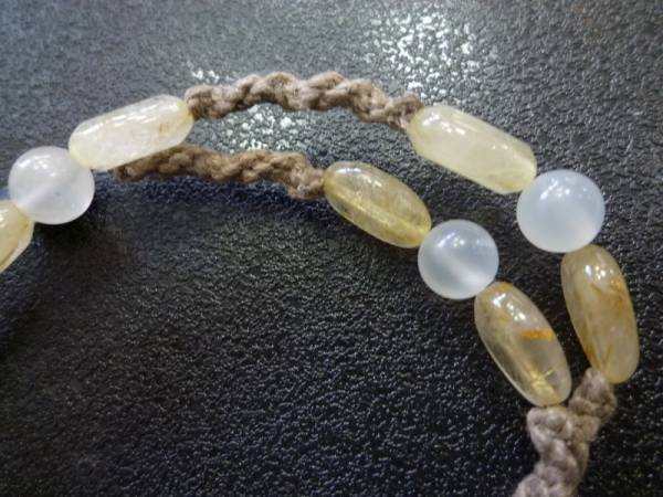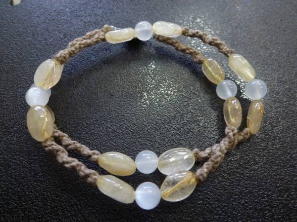 ゴールドルチルクォーツ ムーンストーン 手編み2連ブレスレット