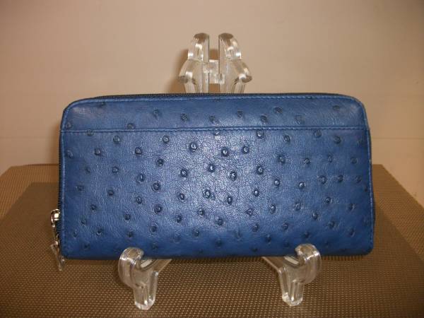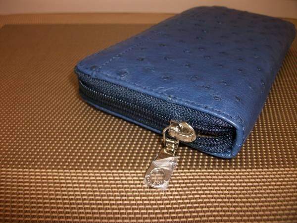 ☆【激安】オ-ストリッチ ロダニア ラウンドファスナ- ネイビ- 長財布 未使用品 格安!!