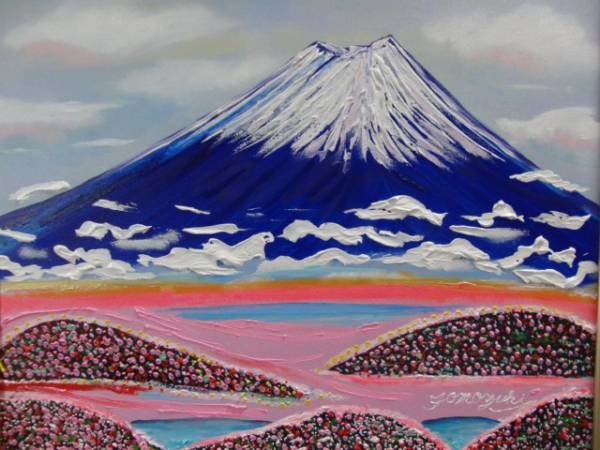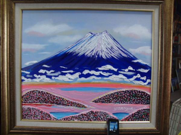 ≪国美協≫TOMOYUKI・友之、『富士山・芝桜』、油彩画、F10号:53,0cm×45,5cm、一点物、新品高級油彩額付、直筆サイン・真作保証付