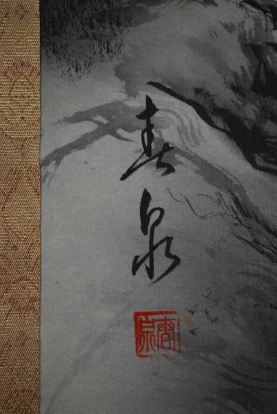 【真作】【参考】春泉【作品状態】 本紙は絹本肉筆です。 本紙は多少の糊シミあります。表装は天地に糊シミ、汚れシミあります。    桐合せ箱付     軸丈  縦 188㎝×幅 59㎝  写真で状態をご判断の上、宜しくお願い致します。 ※質問などについては、すぐにお応えできない場合があります。 【注意事項】☆送料は元払いでお届け致します☆ 尚 一両日中に2点以上落札して頂き、       同梱発送の場合は送料は無料とさせて頂きます。 【その他の商品は ☆宝船☆】        屋号を ☆宝船☆ と致しました。       他にも色々出品しております 掛軸☆宝船☆ と検索してみて下さい。 宜しくお願い致します。 Yahoo!オークションでは、2017年10月25日から<絵画の出品に関するルール改定>が施行されました。 つきましては、当方では絵画の出品に於いて、特定の作者の作品と記載、もしくは署名落款がある場合、【真作】または【模写】と明記することとなりました。 タイトルにございます分類は下記の通りとなります。 ご確認の上、十分にご検討いただきご入札をお願い申し上げます。 タイトル頭標記の意味 【真作】本物であると断定できる作品、真作(絵画)・真筆(書)作品のこと。 ※【模写】工芸や印刷などではなく、人が書いた作品のこと。      わずかでも真作ではないと疑いのある作品は模写と表記いたします。模写として出品させて頂きます。 ※【複製】印刷・版画・拓本・リトグラフ・工芸作品のこと。 ※「真作」表記の出品で、所定鑑定機関により万が一「真作」でなかった場合には返品をお受け致します。 返品は落札後10日間です。返品の場合は落札代金のみ返金させていただきます。 ご理解のほど宜しくお願い申し上げます。