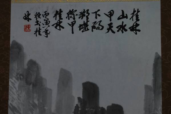 作者不詳/桂林山水画賛//掛軸☆宝船☆K-519 J
