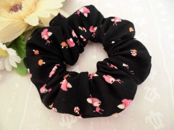 ★シュシュ★☆小さなバンビとキノコ♪オックス★黒系★