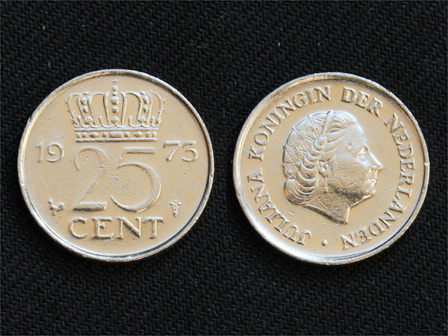 【オランダ】 25セント 1973年 ユリアナ女王 ニッケル貨 cent