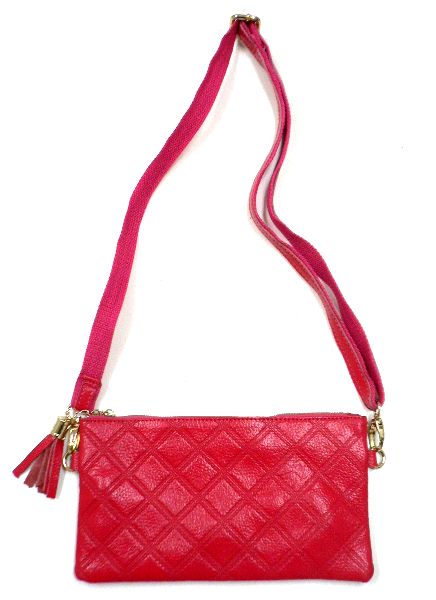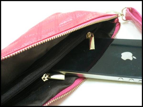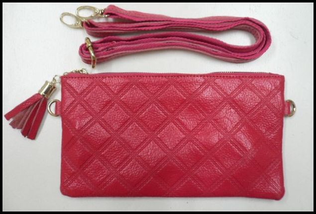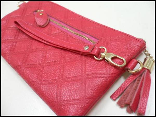 牛革アーガイル柄ショルダーバッグ/ピンク/クラッチバッグにも◎ストラップ付