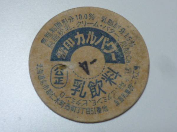 牛乳キャップ 牛乳のふた/雪印カルパワー/倉島乳業/仁木工場