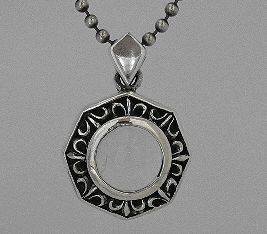 シルバー925銀の天然石ムーンストーン百合紋オクタゴン ペンダント