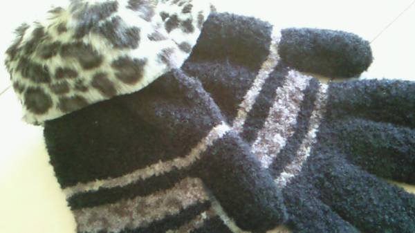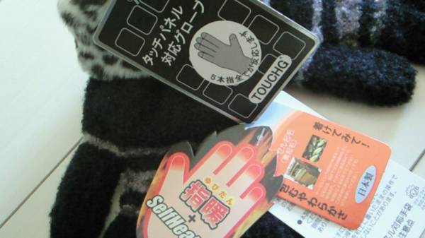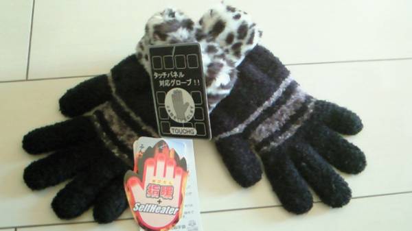 手袋 アニマル柄/黒 指暖/タッチパネル対応 日本製 レオパード