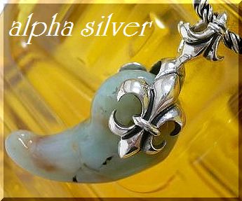 ブランド名【alpha silver】、サイズ:縦5cm(バチカン含む)×横1.6cm、重さ:約18g、定価\17800